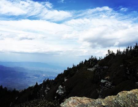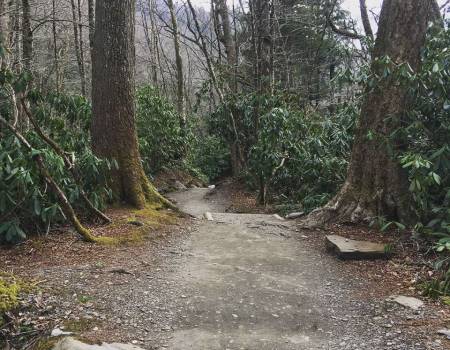 This trail begins with a mild incline along Alum Cave Creek and the Styx Branch. At 1.3 miles you will get to Arch Rock, one of the trail's prominent landmarks. The arch's interesting geological features were formed when wind and water eroded away the softer rock. The trail passes right under the natural arch making a great vantage point for photos. At the 2 mile mark you will arrive at Inspiration Point. From here, you will be rewarded with views of Little Duck Hawk Ridge and The Eye of the Needle, as well as Myrtle Point on Mt. LeConte. Past Alum Cave, at the peak of Mount LeConte is the LeConte Lodge where you can stay in one of the primitive cabins that are the only formal lodging in the Great Smokey Mountains National Park. At the summit you can also purchase drinks and use the restroom. This is a popular trail, so you will likely be in the company of other hikers.