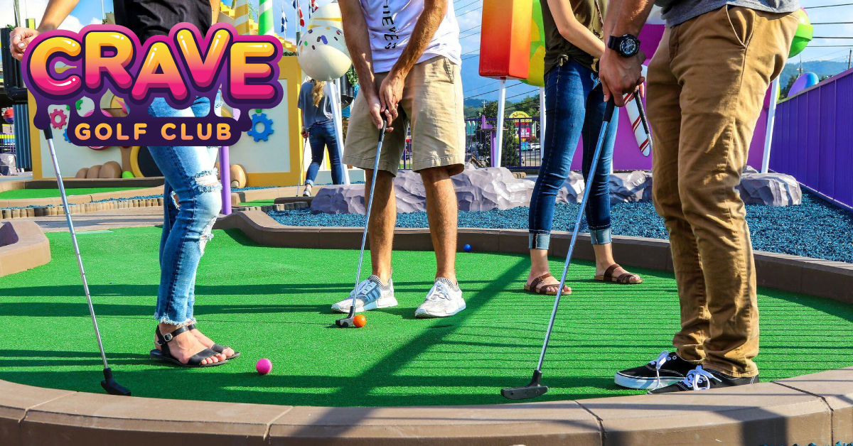 Crave’s Rooftop Mini-Golf Course in Pigeon Forge offers 19 holes of adventure and fun as you golf your way through this two-tiered outdoor course. Multi-challenge holes give you more than one way to win as you putt through a fully handicap accessible candy-coated wonderland that tests the skill of all ages.