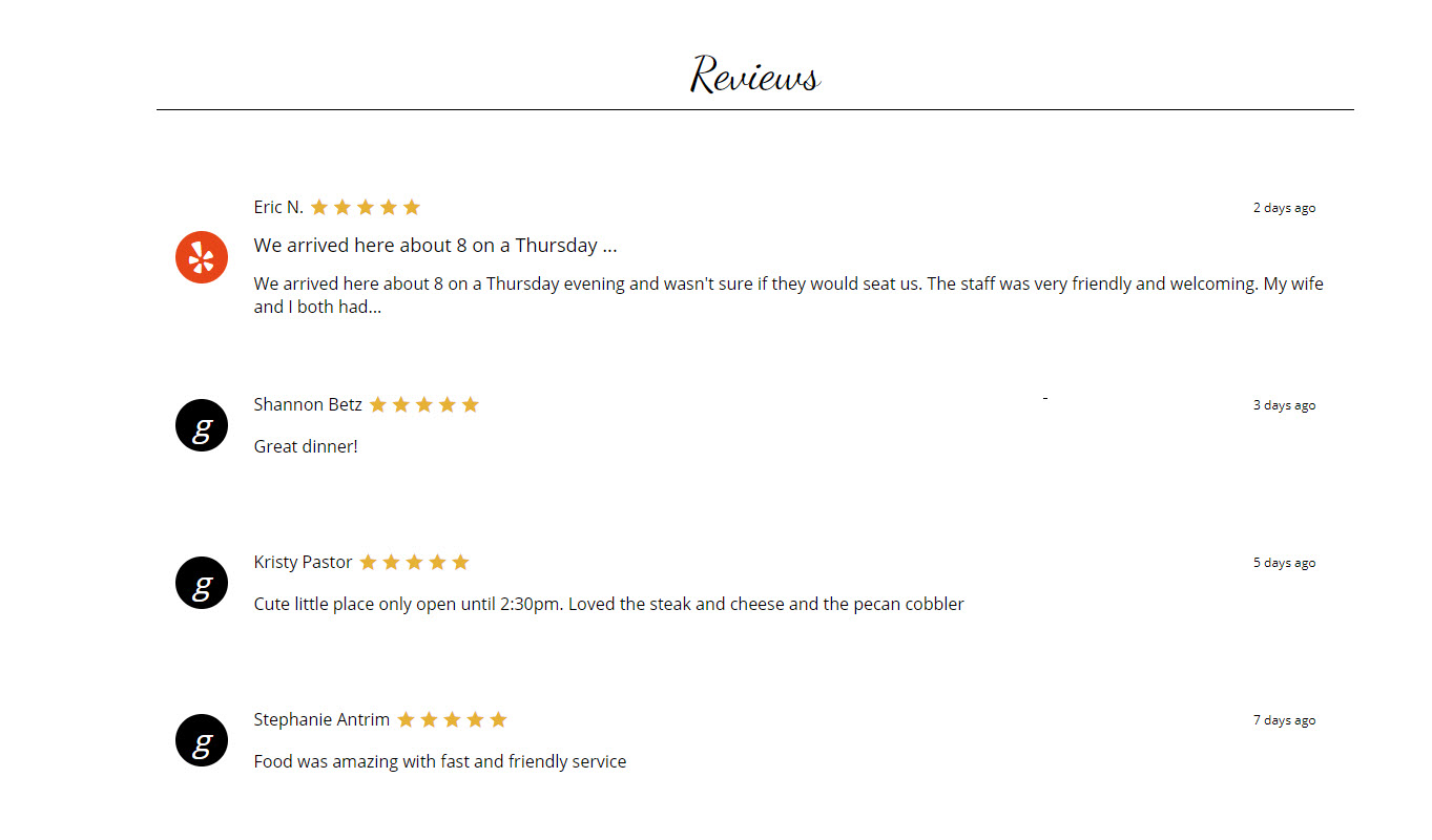 Now in it’s sixth year of business Elvira’s Cafe has become the community’s favorite place to catch up and chow down. With an excellent team in the kitchen and some of the friendliest waitresses in Tennessee, it is easy to see why Elvira’s home away from home has become the place to be for home made food in a warm and inviting environment. Give us a try and we know you will be impressed. Our local ingredients and farm fresh food make all the difference.