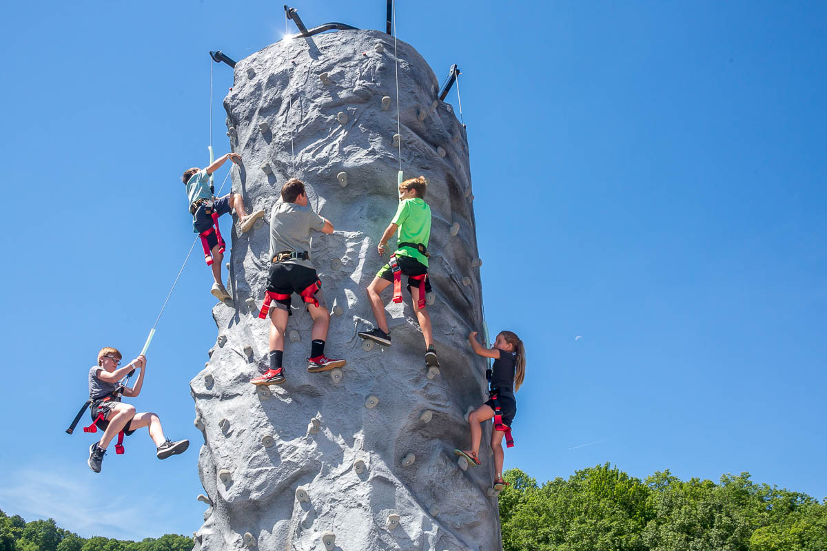 One of our newest attractions, our 30-foot rock wall is entertaining and a great workout for those of all ages! Each session allows five individuals to scale the wall at the same time while secured to a built-in belaying system. See how fast you can get from the bottom to the top! Then enjoy rappelling down, and celebrate the accomplishment.