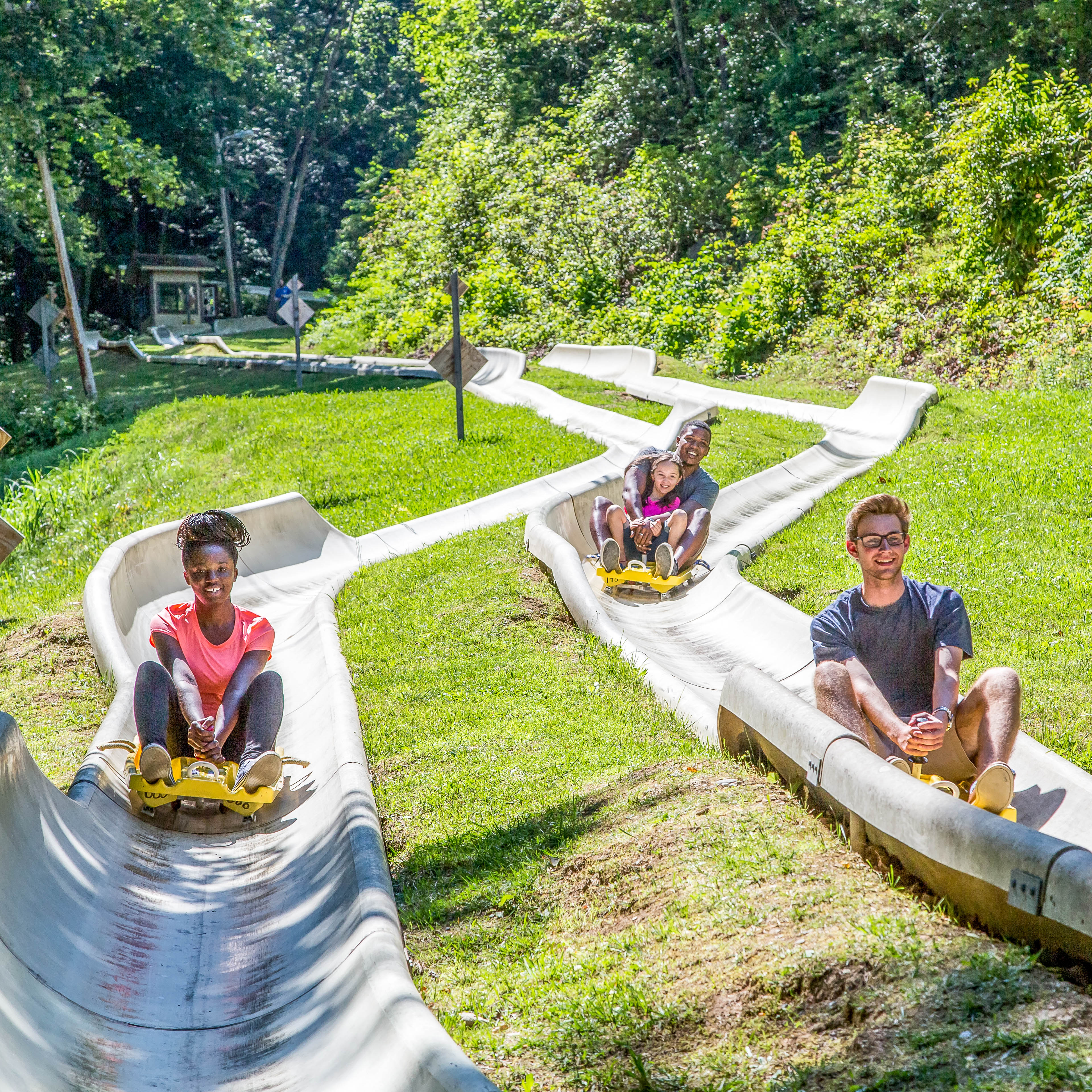 We’ve been sliding since 1976! The Alpine Slide continues to be a huge hit at Ober Gatlinburg. Take the Scenic Chairlift to the midway point, then once you unload, your “chariot” awaits! These sled-like carts have a push/pull the lever so you can control your speed as you wind down either of the 1800’ parallel tracks. Race your buddy or take it easy on your descent down the beautiful forests of Mount Harrison and take in the unique views of the Ober Slopes and the Smoky Mountains.